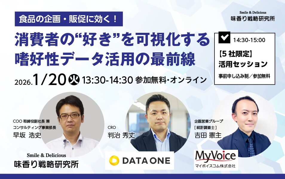【共催セミナー】“味の好み”で消費者を理解する。食品の企画・販促に「効く」嗜好性データ解説&5社限定活用セッション 消費者インサイトを掴み、戦略の精度を高める。嗜好性データの実践的な活用方法を解説 続きを読む »