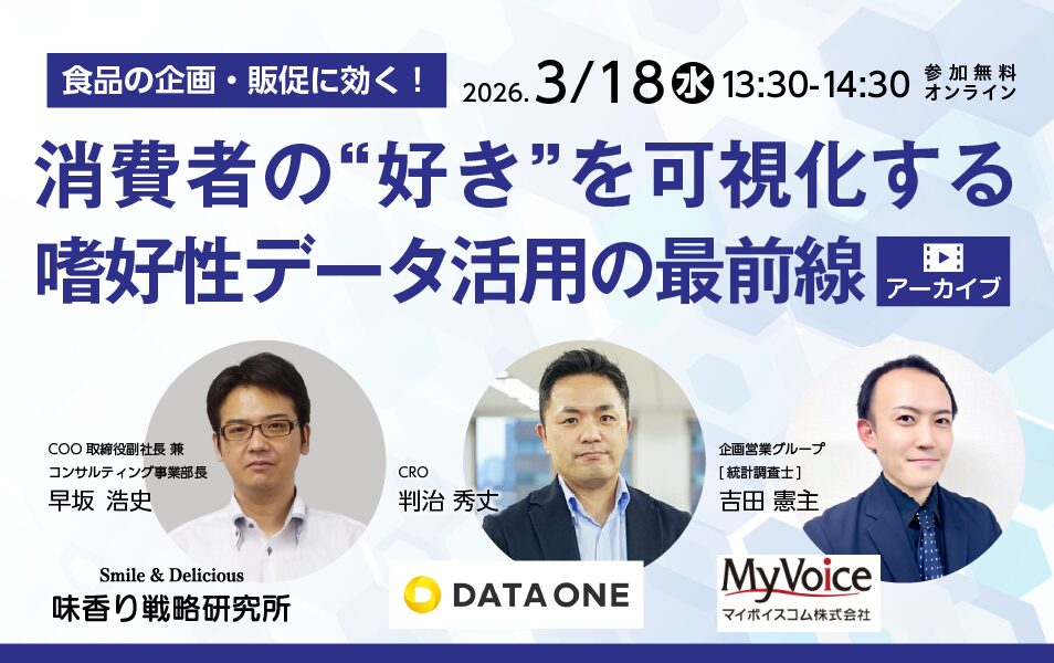 〈大反響セミナーのアーカイブ〉“味の好み”で消費者を理解する。食品の企画・販促に「効く」嗜好性データ解説 消費者インサイトを掴み、戦略の精度を高める。嗜好性データの実践的な活用方法を解説 続きを読む »